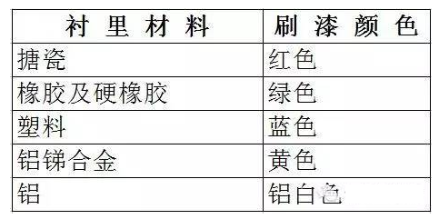 表示密封面材料的油漆,刷在手輪、手柄或自動(dòng)閥件的蓋上,其顏色與密封面材料的關(guān)系如下: