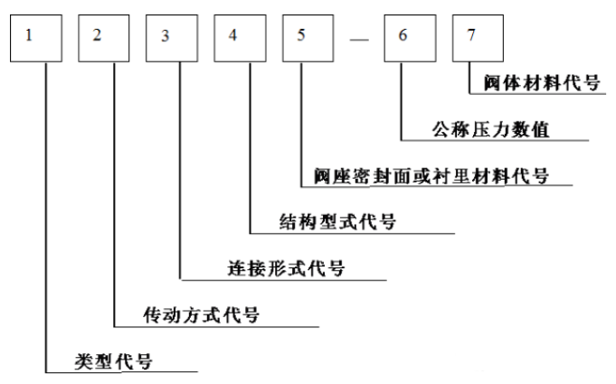 按照《閥門(mén)型號(hào)編制方法》規(guī)定,閥門(mén)型號(hào)分七個(gè)單元: