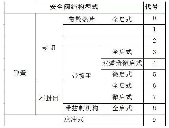 杠桿式安全閥,在類(lèi)型代號(hào)前加G字(漢語(yǔ)拼音字母),數(shù)字代號(hào),新標(biāo)準(zhǔn)未作規(guī)定。舊標(biāo)準(zhǔn)以1代表單桿微啟式,2代表單桿全啟式,3代表雙桿微啟式,4代表雙桿全啟式,6代表脈沖式。