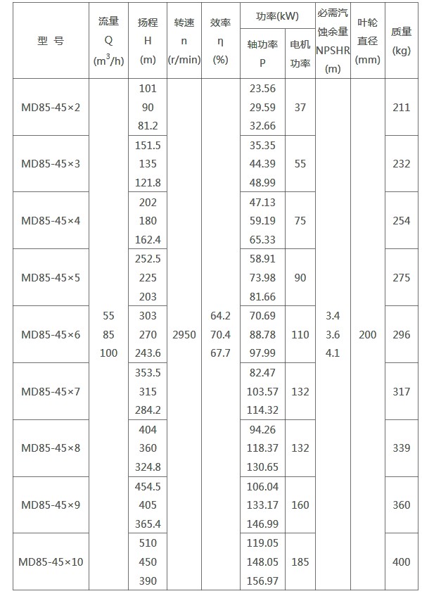 MD85 - 45* 6礦用多級泵_型號價格_參數_原理