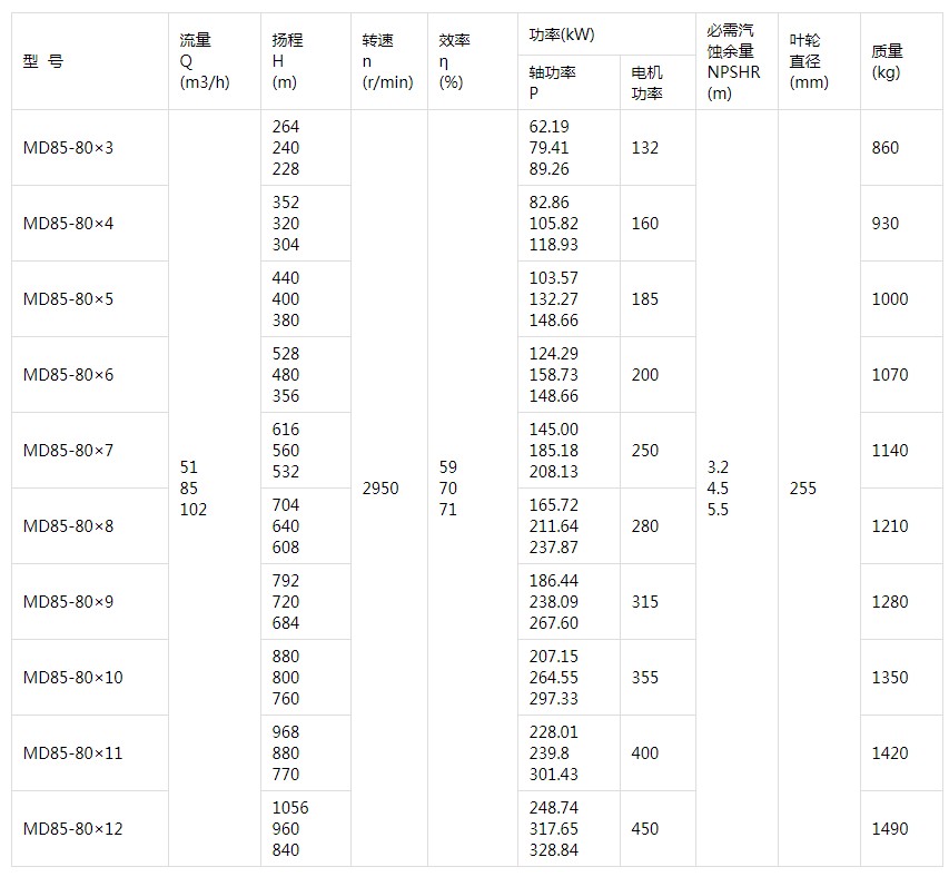 "MD"-多級礦用離心泵 | "80"-吸入口直徑 | "30"-單級揚程 | "5"-級數(shù)